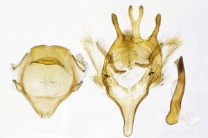 10-11: ♂, Frankreich, Buxières-sous-Montaigut, 46° 11' 35.156" N, 2° 49' 12.203" E, Zucht ex ovo, ♀ Anfang August 2013 am Licht, e.o. Anfang April 2014 (leg., cult., det. & Fotos: Jeroen Voogd)Forum