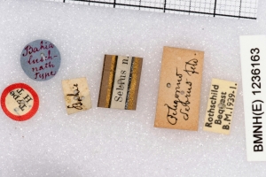 16-18: Holotypus ♂ von Eudamus sebrus Felder & Felder, 1867, Daten siehe Etiketten (fot.: Nick V. Grishin, Fotos bearbeitet: Michel Kettner), © Images copyright Trustees Natural History Museum, used with permission.