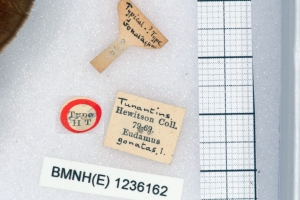 1-3: Holotypus ♀ von Eudamus gonatas Hewitson, 1867, Daten siehe Etiketten (fot.: Nick V. Grishin, Fotos bearbeitet: Michel Kettner), © Images copyright Trustees Natural History Museum, used with permission.