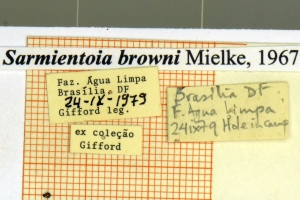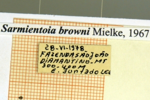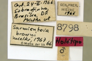 Mielke (1967: 324): “Holótipo ♂ : 24-II-1966, Sobrandinho, Brasília, DF, Brasil O. Mielke leg. N.° 8.798. Coletado no cerrado.” — Paratypen: 20 ♂♂ und 7 ♀♀, alle aus Brasilien.