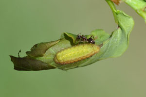 "Schon immer" klar war, dass die Raupen dieser Art an kleinen oder sehr kleinen, sonnig stehenden Eichenbüschen zu finden sind, dort "an den oberen Zweigen sonnig stehender Jungeichen" (Ebert & Rennwald (1991: 182)). Mir selbst gelangen an solchen Stellen aber keine Eifunde. Der Grund dafür wurde mir erst durch Gespräche mit Anton Koschuh klar - ich hatte da gesucht, wo die Raupen zu finden sind, die Eier werden aber ganz überwiegend woanders abgelegt. Die Arbeiten von Koschuh & Savas (2004) bzw. Koschuh & Fauster (2005) zeigten jedenfalls, dass die Eier in der Steiermark fast ausschließlich unten am Stämmchen dieser Eichen zu finden waren - ein Schema, das sich danach bald auch für andere Fundstellen Mitteleuropas bestätigte.