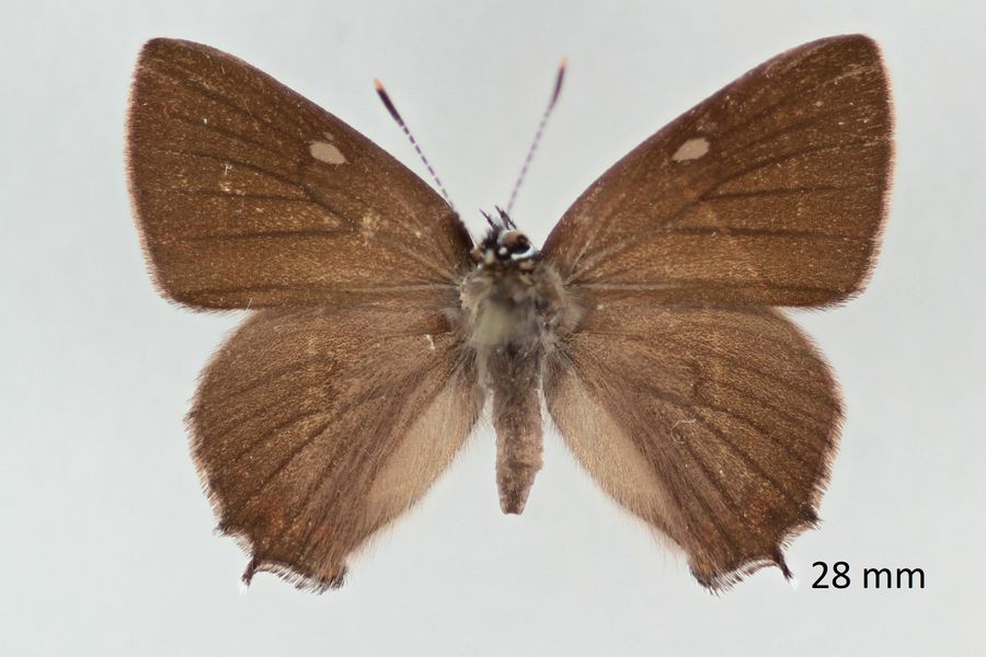 1: Die ♂ ♂ besitzen auf der Vorderflügelunterseite im Gegensatz zu den ♀ ♀ einen Androkonienfleck, der damit eine Unterscheidung der Geschlechter ermöglicht. Je nach Lichteinfall und Erhaltungszustand ist dieser Fleck aber nicht immer zu erkennen.