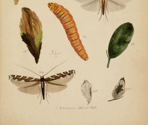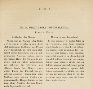 - Stainton, H. T. (1864): The natural history of the Tineina. Volume VIII. Containing Gracilaria. Part I. and Ornix. Part I. 1-315, pl. I-V. London (John van Voorst), Paris (Deyrolle), Berlin (K. S. Mittler und Sohn).