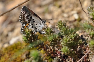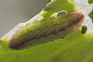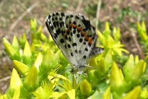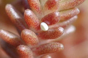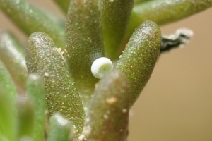 1: an Felsen-Mauerpfeffer (Sedum rupestre) det. Jürgen Hensle: Deutschland, Thüringen, Koberfelsen bei Burgk, 30. April 2007 (Freilandfoto: Jens Philipp), Beobachtung der Eiablage Jens Philipp, conf. Jürgen HensleForum