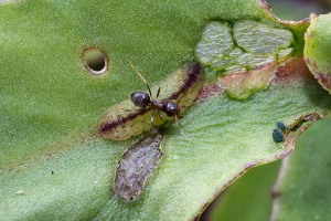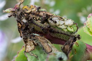 1: Sedum telephium mit Schwarzer Wegameise Lasius niger und weiteren Ameisen-Arten: Deutschland, Bayern, Landkreis Regensburg, Umgebung Sinzing, 16. Juni 2016 (Freilandfoto: Steffen Schmidt)Forum