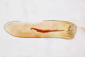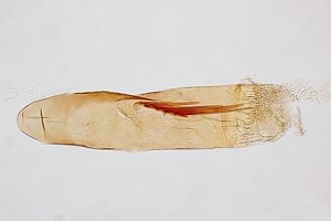 1: Genitalpräparat des oben abgebildeten weiblichen Falterbelegs 1, Daten siehe dort, GP 2009-075 (präp., det. & Foto: Rudolf Bryner)Forum