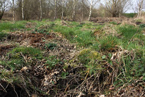 2-3: Larvalhabitat, Deutschland, Niedersachsen, Umgebung Bad Nenndorf, Moorbodenabbau- und aufbereitungsanlage (= Brache mit unterschiedlichen Sukzessionsstadien auf Teilflächen), 65 m, 30. März 2014 (Fotos: Tina Schulz)
