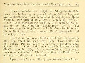 - Erstbeschreibung: Bang-Haas, A. (1907): Neue oder wenig bekannte palaearctische Macrolepidopteren. — Deutsche Entomologische Zeitschrift Iris 20 (1-2): 69-87, pl. III. Dresden.