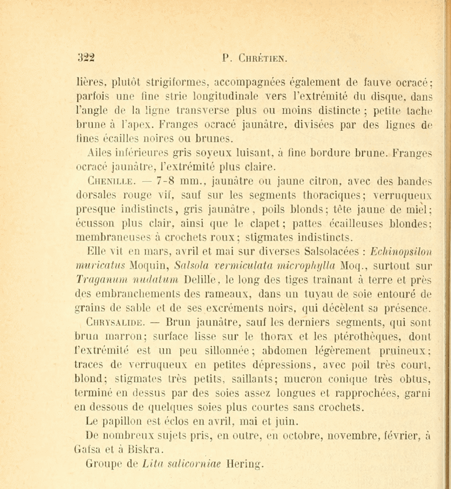 - Erstbeschreibung: Chrétien, P. (1915): Contribution à la connaissance des Lépidoptères du nord de l'Afrique. — Annales de la Société entomologique de France 84: 289-374. Paris.