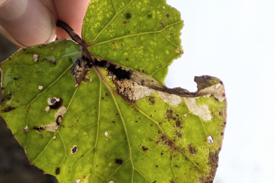 Die wichtigste Raupennahrungspflanze, der Huflattich, war schon zum Zeitpunkt der Erstbeschreibung bekannt. Schütze (1931) formulierte später zur Raupe: "Miniert ein Blättchen von Tussilago, Petasites albus und Petasites niveus [Petasites paradoxus]. Mine gangartig, verzweigt, wie eine Dipterenmine, gelblich (Sorhagen)." Insgesamt ist der Huflattich die mit Abstand wichtigste und außerhalb der Gebirge auch einzige Raupennahrungspflanze der Art.