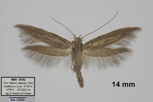 1-2: ♂, Spanien, Aragonien, Huesca, Sierra de Alcubierre, 671 m, 41.831898, -0.514004, 5. und 6. Juli 2021, am Licht (leg., gen. det. & fot.: Friedmar Graf), Referenz: Bengt A. Bengston. Microlepidoptera of Europe 2, Scythrididae, ♂ Gen. Fig. 170Forum