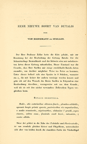 - Erstbeschreibung: Heinemann [H.] & [S. C.] Snellen (1872): Een nieuwe soort van Butalis. — Tijdschrift voor entomologie 15: 280-284. s'Gravenhage (Martinus Nijhoff) [Artikel von Heinemann in deutscher Sprache mit niederländischem Kommentar von Snellen].