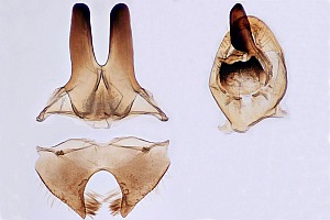 Genitalabbildungen z.B.: Bengtsson, B.: Microlepidoptera of Europe (2): Sycthrididae, 1997, p. 246 (♂), p.272 (♀)