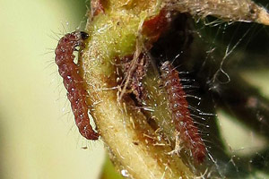 8: Jungraupen (ca. 3 mm) vor Überwinterung: Deutschland, Niedersachsen, Landkreis Schaumburg, Rodenberg, Algesdorf, 96 m, an Cotoneaster dammeri (Teppich-Zwergmispel), 29. September 2024 (det. & manipuliertes Freilandfoto: Tina Schulz)Forum