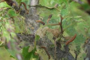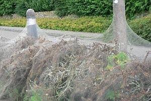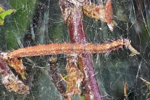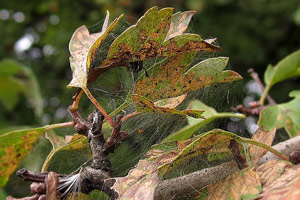 1-3: Raupengespinste bei Massenauftreten an Cotoneaster: Deutschland, Niedersachsen, Osterholz-Scharmbeck, 20. Juli 2008 (Fotos: Peter Heyer), det. Heinrich VogelForum