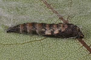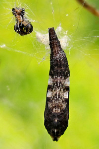 8: Deutschland, Sachsen, Dresden-Tolkewitz, Elbwiese, Puppenfund an Weißdorn (Crataegus) am 28. Mai 2007 (Studiofoto nach Falterschlupf am 2. Juni 2007: Franziska Bauer), det. Jürgen RodelandForum