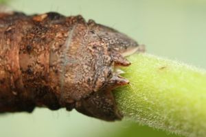 1-2: Deutschland, Sachsen, Dübener Heide, Umgebung von Doberschütz, Kiefernmischwald, L4 an Faulbaum (Frangula alnus) am 14. September 2007, Foto 8. Oktober 2007 (Studiofotos: Heidrun Melzer)