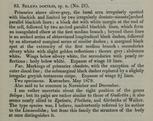 - Erstbeschreibung: Butler, A. G. (1881): On a Collection of Lepidoptera from Western India, Beloochistan, and Afghanistan. — Proceedings of the Scientific Meetings of the Zoological Society of London for the Year 1881: 602-624.