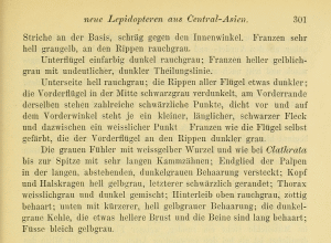 - Erstbeschreibung: Graeser, L. (1892): Neue Lepidopteren aus Central-Asien. — Berliner Entomologische Zeitschrift 37 (3): 299-318.