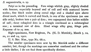 1-2: USA, Pennsylvania, New Brighton, 14. bzw. 21. März 1902, leg. H.D. Merrick, coll. NHM London unter Nr. NHMUK010891336 bzw. NHMUK010891337 (Belegfoto: Peter Buchner) Den Etiketten-Daten zufolge stammen beide Belege vom selben Zeitraum und selben Ort wie die Typenserie, sind aber nicht als Typen ausgewiesen