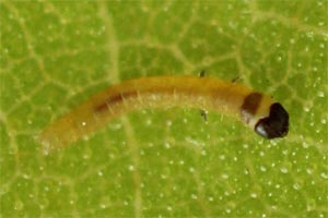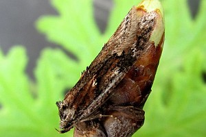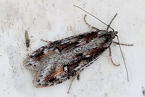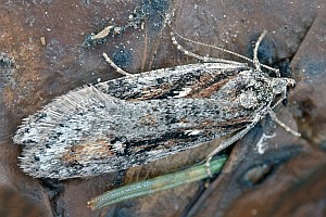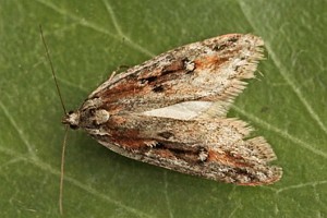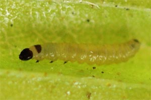 "Zwischen versponnenen Blättern an Betula (Sorhagen und andere) in einem an der Seite zusammen gesponnenen Birkenblatt, das hinten und vorn offen ist (Disqué)" (Schütze 1931). Die Raupe lebt dort von Mai bis in den Herbst.