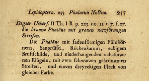- Erstbeschreibung: Goeze, J. A. E. (1781): Entomologische Beyträge zu des Ritter Linné zwölften Ausgabe des Natursystems, 3. Teil, 3. Band. I-XLVIII + 1-439. Leipzig (Weidmanns Erben und Reich).