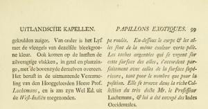 Nur der „Naamwyzer van de dag- en nagt-kapellen“ – im Band 1 der "uitlandsche kapellen" die Seiten 151-155 – ist maßgeblich für das Erscheinungsjahr der Erstbeschreibung, weil dies der einzige binominale Teil des Bandes ist. Nach Hemming (1958: 41) wurden diese Seiten 1776 publiziert.