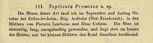 Staudinger (1871: 326) entdeckte die Art am 14. September 1866, auf dem Tag genau 10 Jahre nach seiner Verlobung (lat. promittere = versprechen).