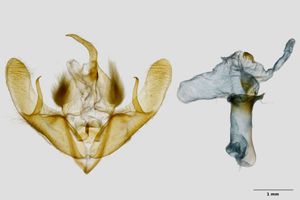 1: ♂, Polen, Podlachien, Gmina Goniądz, Osowiec Twierzda, Feuchtgebiet, 100 m, 53.476°N, 22.621°E, 18. Juli 2009, am Licht (prep., gen.det. & Foto: Hartmuth Strutzberg) weitere Detailfotos im ForumForum