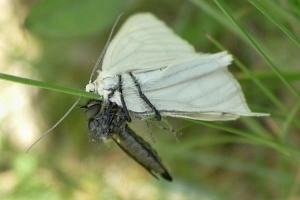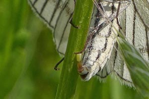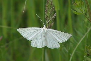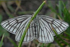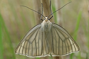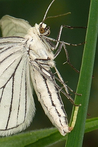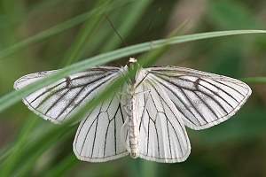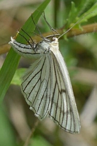 Da der Falter tagaktiv und für einen Geometriden auffallend groß ist, kann er bei ungenauer Beobachtung für einen Weißling gehalten werden. Die bei Tagfaltern stets keulenförmigen und bei S. lineata fadenförmigen Fühler sind ein sicheres Unterscheidungsmerkmal. Von etlichen mehr oder weniger ähnlichen anderen Geometriden, z. B. abgeflogenen Grünspannern, die fast weiß erscheinen, unterscheidet sich S. lineata durch die kontrastreich erscheinende, dunkle Flügeläderung.
