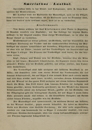 - Smerinthus kindermanni [häufig verwendete falsche Schreibweise (so schon auf dem roten Originaletikett (jetzt Lectotypus) des Beschreibers der Art)]