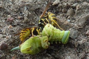 Abendpfauenaugenraupen haben meist blaue Hörner. Es kommen zwar auch gelbgrüne Raupen vor, aber nur selten, noch viel seltener mit roten Flecken. [Anmerkung Wolfgang A. Nässig]