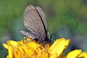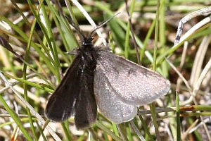 Die Weibchen haben kleinere Flügel und sitzen in der Vegetation. Sie bewegen sich bloss hüpfend fort und fliegen kaum.