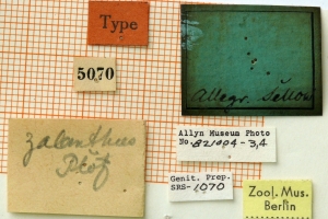 1-3: Syntypus ♂, Daten siehe Etiketten (fot.: Ernst Brockmann, Fotos bearbeitet: Michel Kettner), coll. Zoologisches Museum der Humboldt-Universität zu Berlin.