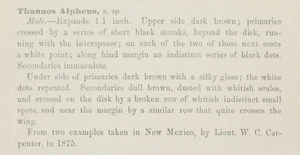 • Erstbeschreibung: Edwards, W. H. (1876): Description of new species of Diurnal Lepidoptera, found within the United States and British N. A. — Transactions of the American Entomological Society 5: 202-208. — Digitalisat auf biodiversitylibrary.org: [206]