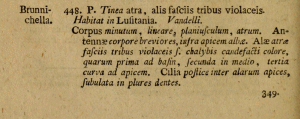 Traugott-Olsen & Schmidt Nielsen (1977) teilen mit: "In the Linnean collection at the Linnean Society, London, a single specimen is present under the name brunnichella. This has been designated a lectotype by Dr. J. D. Bradley, and is here cited for the first time. It is a female, labelled "N 115", "Brunnichella", "898", "Lectotype", "Genitalia slide prep.. J. D. Bradley, 1977"." Aus der Erstbeschreibung ist zu entnehmen: "Habitat in Lusitania" - der Beleg müsste also aus Portugal stammen.