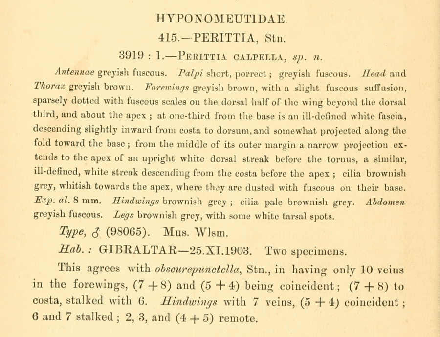 - Perittia calpella Walsingham, 1908 [Originalkombination]