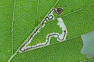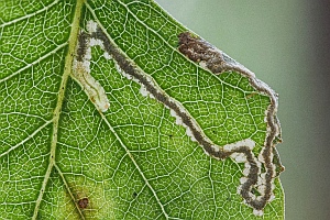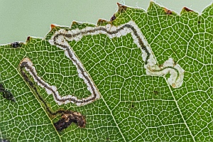 Hinweis: Eine bis zum 7. August 2018 hier gezeigte Mine aus Finnland, Nordkarelien, wurde nach einem Hinweis von E. van Nieukerken zu Eriocrania sparrmannella (Mine der Jungraupe) verschoben.