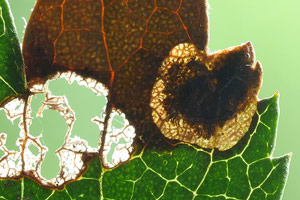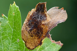 1-2: Befallsbild an Weißdorn (Crataegus monogyna): Schweiz, Neuchâtel, Cornaux, 600 m, 8. August 2010 (leg., det. & Foto: Rudolf Bryner)Forum