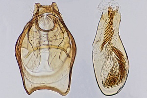 1: ♂, Deutschland, Nordrhein-Westfalen, Hövelhof, NSG Moosheide, 125 m, am Licht, 14. Mai 2018 (leg., Präparation, det. & Mikrofoto Dieter Robrecht)Forum