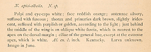 - Erstbeschreibung: Chambers, V. T. (1873)Micro-Lepidoptera. — The Canadian Entomologist 5: (3) 44-50, (5) 85-91, (6) 110-115, (7) 124-128. [Digitalisat auf biodiversitylibrary.org]