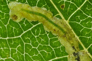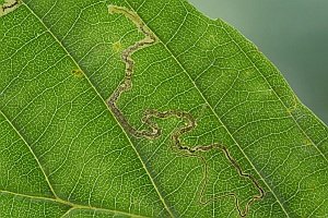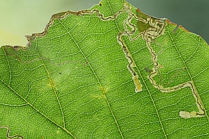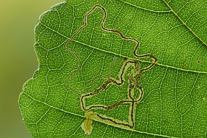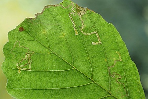 Auf [bladmineerders.nl] wird auch über den Fund einer Mine an Hänge-Birke (Betula pendula) berichtet und kommentiert: "Erik van Nieukerken (pers. comm.) found the mine depicted below on Birch. The mine resembles St. luteella, but lacks the characteristic beginning. A study of the larval DNA showed that glutinosae was involved. Obviously, it now has to be established how frequently the species uses Birch as as hostplant."