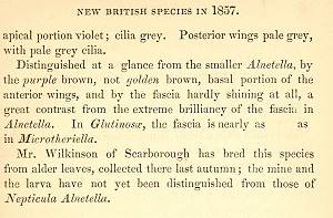 - Erstbeschreibung: Stainton, H. T. (1858): Lepidoptera. New British Species in 1857. — The Entomologist's Annual for MDCCCLVIII: 85-98 + frontispiece. London (John van Voorst).