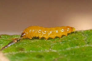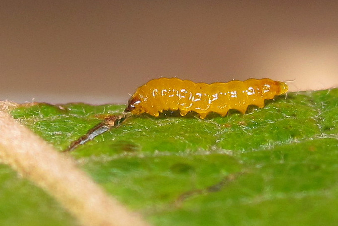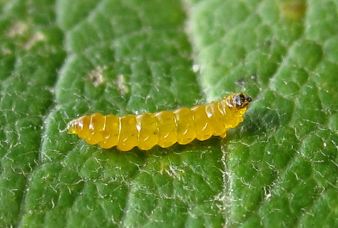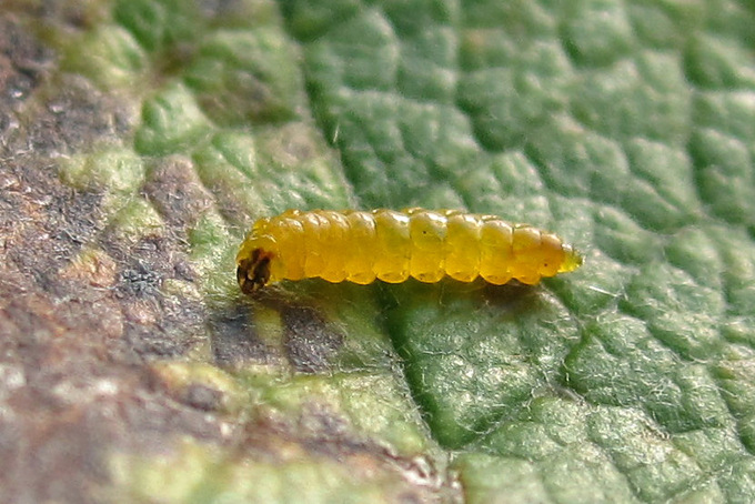 Nach Johansson et al. (1990) minieren die Raupen in Blättern schmalblättriger Weiden: Bruch-Weide (Salix fragilis), Lorbeer-Weide (Salix pentandra), Silber-Weide (Salix alba), Trauer-Weide ("Salix babylonica") und Korb-Weide (Salix viminalis), gelegentlich noch weiterer Weiden-Arten. [Bladmineerders.nl] nennt noch Salix x chrysocoma [= Salix babylonica x Salix alba] (Dotter-Hänge-Weide) und Salix triandra (Mandel-Weide).