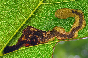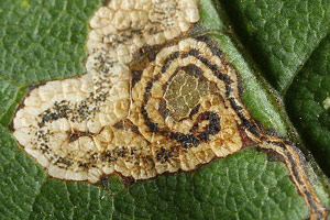 Die Kotlinie von Stigmella speciosa ist ziemlich variabel; mehr Gewicht hat die Wirtspflanze (an Berg-Ahorn, Acer pseudoplatanus beispielsweise kommt nur Stigmella speciosa infrage). [Tina Schulz, nach Erik van Nieukerken]