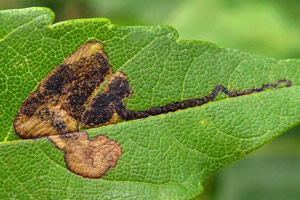 Laut Literatur (A. & Z. Laštůvka, Z. & A. (1997)) kommen in Ahornblättern nur 2 Nepticulidenarten vor, die leicht anhand der Mine unterscheidbar sind: Stigmella aceris: Mine vom Anfang an bis über mehr als 2 Drittel der Länge in ganzer Breite mit grünem Kot gefüllt (dieser Teil oft schwer sichtbar), erst zuletzt wird die Kotlinie schmal und lässt helle Ränder frei. Bei uns an Feld-Ahorn (Acer campestre) und Spitz-Ahorn (Acer platanoides), zudem an Tataren-Ahorn (Acer tataricum). Stigmella speciosa: Mine von Anfang an mit schmaler Kotlinie, die helle Ränder frei lässt. Bei uns an Bergahorn (Acer pseudoplatanus), weiters an Felsen-Ahorn (Acer monspessulanum). [Autor: Peter Buchner]