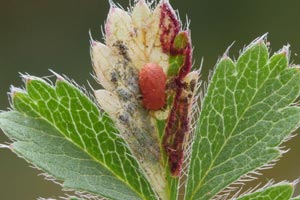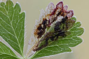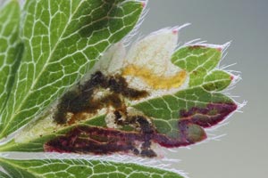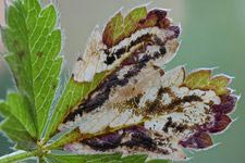 Johansson et al. (1990) benennen Potentilla aurea (Gold-Fingerkraut), Potentilla crantzii (Zottiges Fingerkraut), Potentilla erecta (Blutwurz, Tormentill) und Potentilla tabernaemontani ([= P. neumanniana,] Frühlings-Fingerkraut) als Nahrungspflanzen der Art. [Bladmineerders.nl] ergänzen noch Potentilla alba (Weißes Fingerkraut) und Potentilla reptans (Kriechendes Fingerkraut).