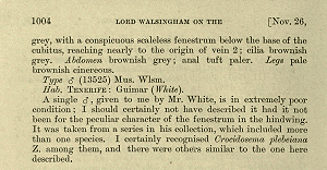 Die Art wurde von Walsingham (1908) nach einem einzelnen Männchen von Güímar auf Teneriffa beschrieben. Klimesch (1987: 304) schrieb dazu: "Von dieser auf Grund eines sehr schlecht erhaltenen, von White bei Güímar gefangenen ♂ beschriebenen Art liegen keine weiteren Funde von den Kanaren vor. Nach Mitteilung von Dr. Sattler wurde die Art auch auf Mauritius und den Seychellen festgestellt; Belege hierfür sind im BMNH (det. Bradley) vorhanden."