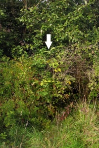 2-3: Raupenfund an junger, in Hecke eingebettener Kirsche (Prunus sp.): Deutschland, Niedersachsen, Ortsrand Rodenberg, 70 m, Streuobstwiese in Gewässernähe, 17. und 12. Oktober 2015 (Fotos: Tina Schulz)