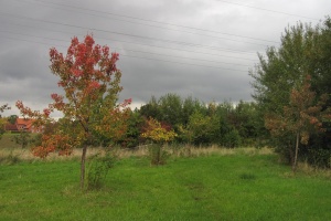 1: Feldweg mit Apfelbäumen und anderen Obstbäumen, Raupenfundort, Deutschland, Sachsen, Dübener Heide, Doberschütz, 11. September 2009 (Foto: Heidrun Melzer)